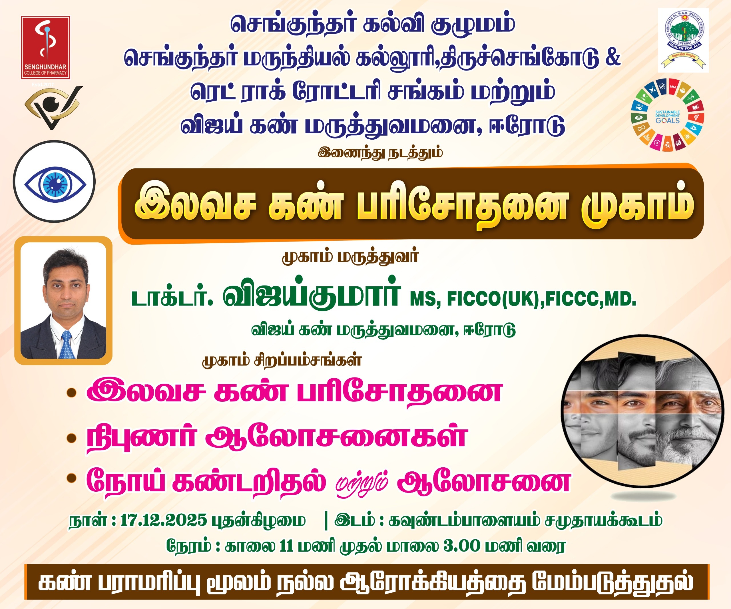 செங்குந்தர் கல்வி குழுமம் செங்குந்தர் மருந்தியல் கல்லூரி,திருச்செங்கோடு & ரெட் ராக் ரோட்டரி சங்கம் மற்றும் விஜய் கண் மருத்துவமனை, ஈரோடு