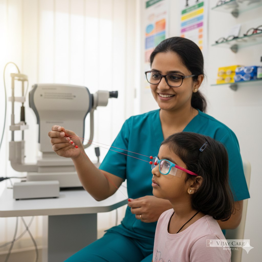 Orthoptics is a highly specialized branch of eye care that focuses on the diagnosis and non-surgical management of disorders related to eye alignment, eye movements, and binocular (two-eyed) vision. At Vijay Eye Care Hospital, our dedicated Orthoptics department plays a crucial role in treating conditions such as squint (strabismus), amblyopia (lazy eye), and double vision, helping patients of all ages achieve comfortable, efficient, and harmonious visual function. Our expert orthoptists work closely with ophthalmologists to provide a holistic approach to vision correction and rehabilitation.