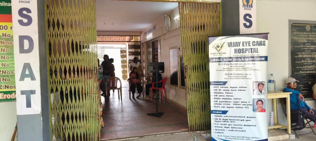 Vijay Eye Care Hospital is conducting a Free Eye Check-up Camp at Sports Academy, V.O.C Park, Erode to promote eye health and create awareness about the importance of regular eye check-ups.